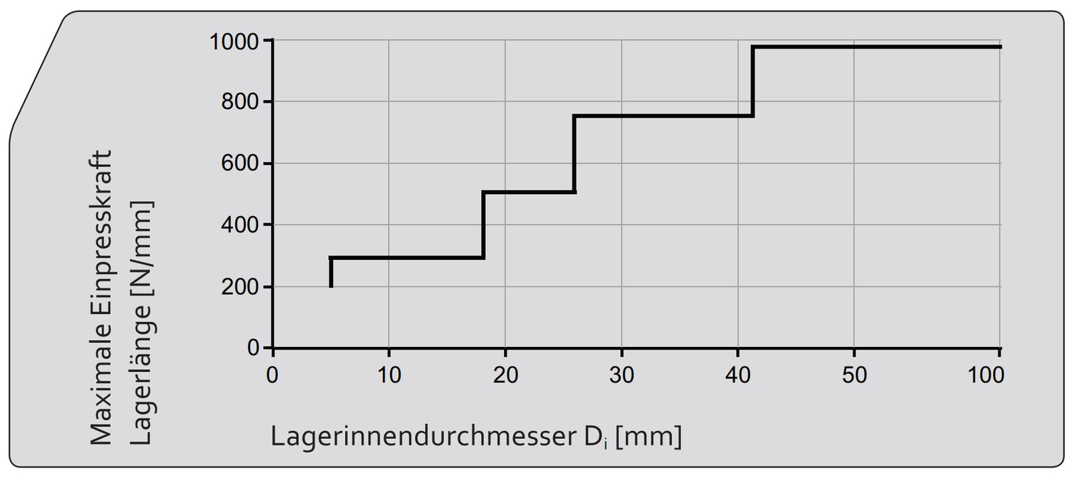 Bei Bundbuchsen muss der Radius am Übergang vom Aussendurchmesser zum Bund berücksichtigt werden. Am Gehäuse muss eine Fase ausreichender Grösse vorhanden sein, um zu verhindern, dass die Bundbuchsen im Bereich des Radius beschädigt werden. Bei Anwendungen mit axialer Belastung muss der Bund ausreichend gestützt werden.